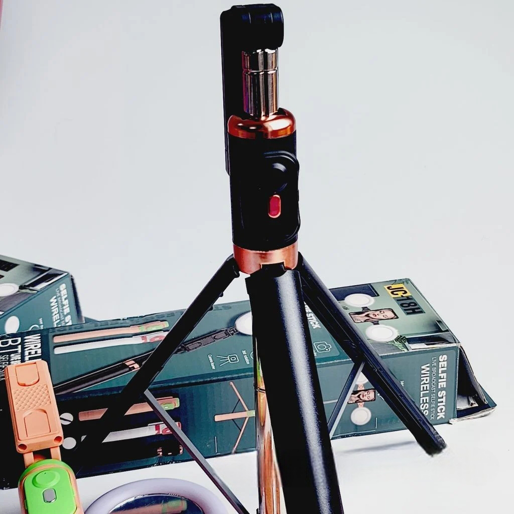 ريموت بلوتوث: التقط صورك بسرعة وراحة دون الحاجة للمس الجهاز.طول قابل للتعديل: يمتد من 28.5 سم حتى 170 سم ليناسب كل أوضاع التصوير.إضاءة LED قابلة للفصل: تمنحك إضاءة مثالية في أي مكان.3 وضعيات إضاءة: دافئة – بيضاء – ناعمة حسب احتياجاتك.زاوية إضاءة مرنة: إمكانية تدوير وتوجيه الإضاءة للحصول على أفضل نتيجة.مرآة مدمجة: تساعدك في التأكد من مظهرك قبل التصوير.توافق شامل: مناسب لجميع الهواتف الذكية دون استثناء.سهل الحمل: تصميم مدمج مثالي للسفر، الرياضة، التخييم، والاجتماعات العائلية.